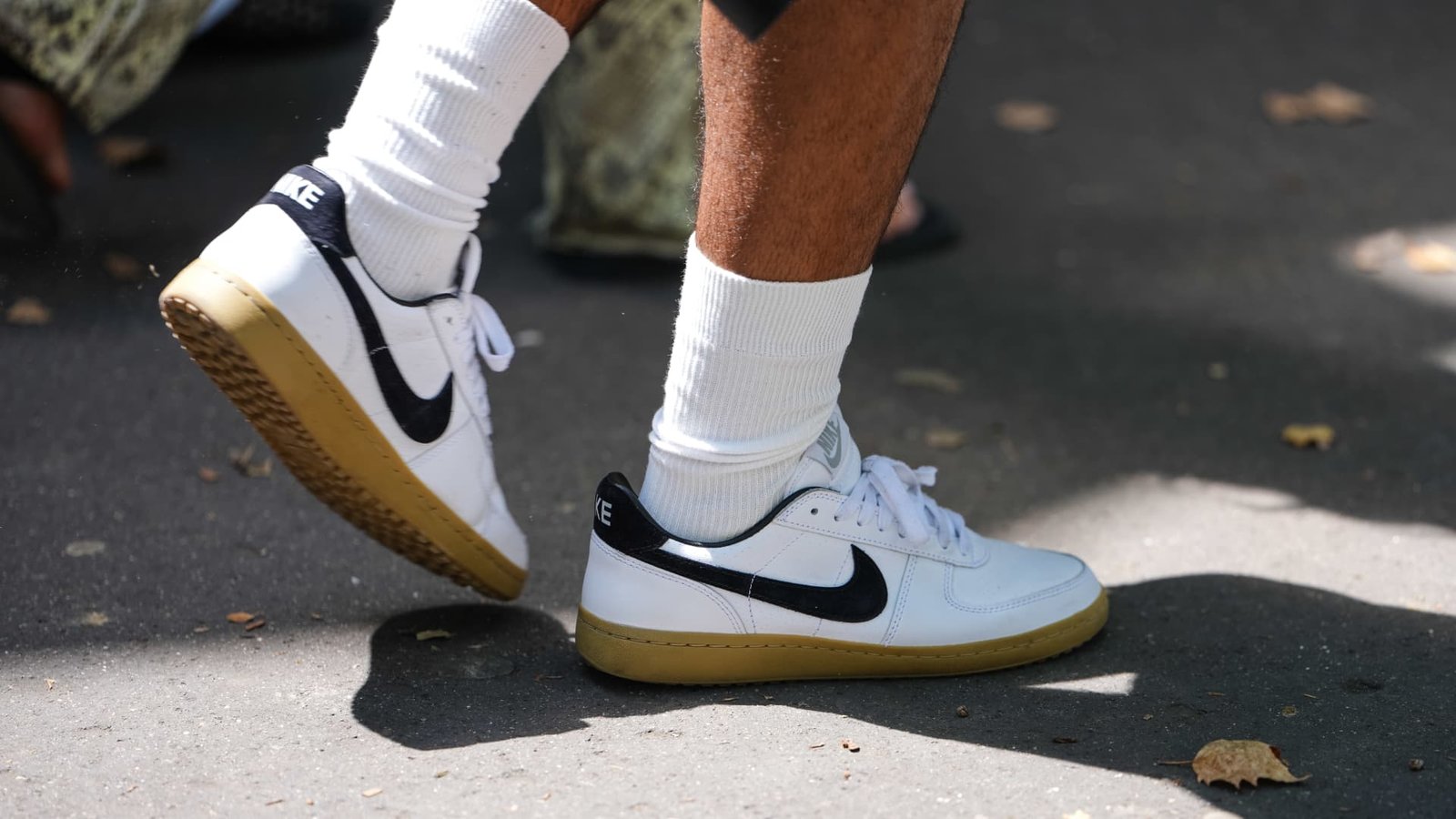 White Nike sneakers on June 26, 2025 in Paris, France.Edward Berthelot | Getty Images Entertainment…